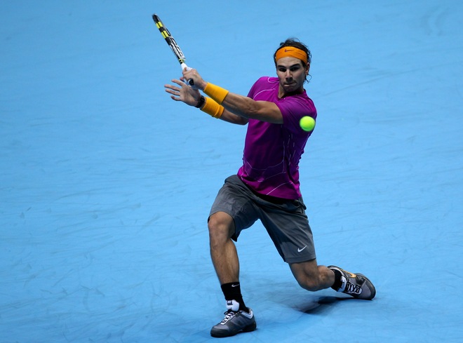 LONDON, ENGLAND - NOVEMBER 27: Rafael Nadal of Spain during his men's semi-final match against Andy Murray of Great Britain during the ATP World Tour Finals at O2 Arena on November 27, 2010 in London, England. (Photo by Clive Brunskill/Getty Images)