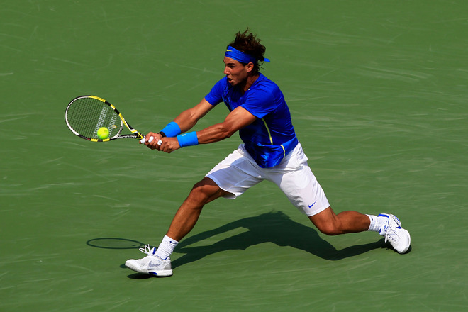NEW YORK, NY - SEPTEMBER 04: Rafael Nadal against David Nalbandian of Argentina during Day Seven of the 2011 US Open at the USTA Billie Jean King National Tennis Center on September 4, 2011 in the Flushing neighborhood of the Queens borough of New York City. (Photo by Chris Trotman/Getty Images)