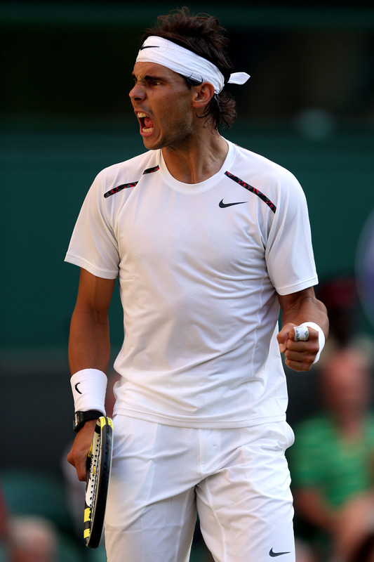 LONDON, ENGLAND - JUNE 28: Rafael Nadal during his Gentlemen's Singles second round match against Lukas Rosol of the Czech Republic on day four of the Wimbledon Lawn Tennis Championships at the All England Lawn Tennis and Croquet Club on June 28, 2012 in London, England. (Photo by Clive Rose/Getty Images)
